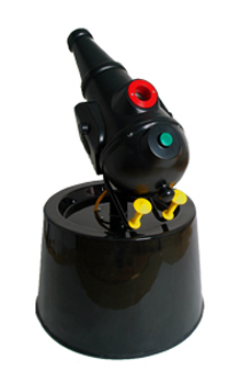 For those who prefer an older, more traditional look to their ball cannons, here’s the Pirate or Mediaeval version. This fan driven cannon takes one soft ball at a time and fires away.