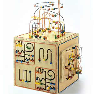 Five Sides of Play include: Rollercoaster Bead Maze, Pathfinder Panel, Magnet Express Panel, Ziggidy Zag Panel, and Sculpture Maze Panel.