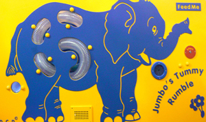 Feed the jolly elephant with soft balls, hear him trumpet, watch the balls go through his ‘insides’ and wait for the funny noise when they emerge at the end! Makes children and adults laugh out loud.