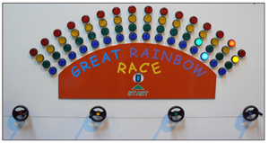 Start the one- to four-person race then spin the wheels as fast as you can to generate the speed to move the lights along – see which colour wins!